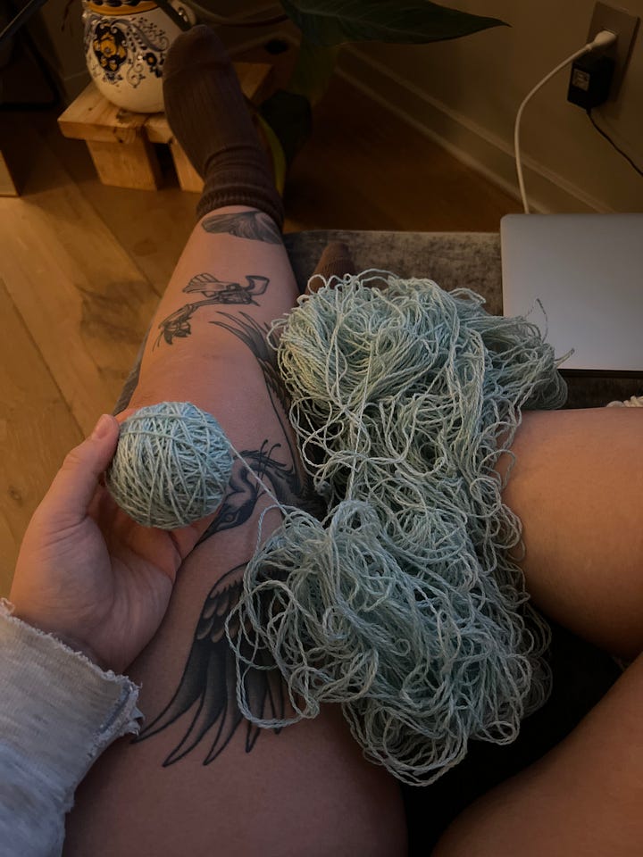 Allow there to be chaos— just like this yarn. Untangle it until it forms a neat little ball, and when you look at it, you don’t feel panic, but the inspiration to get a set of needles and knit. To create from the chaos.